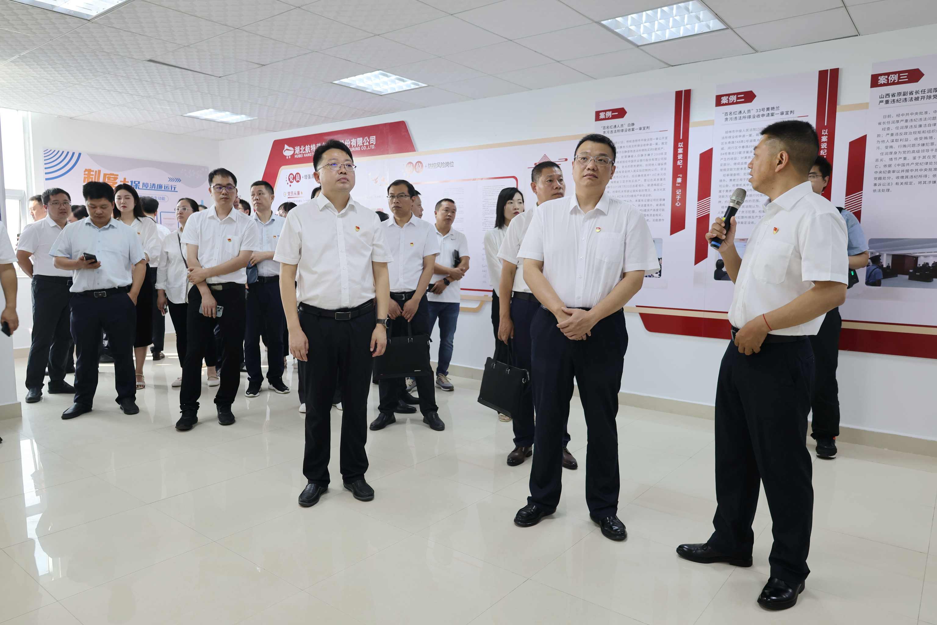 荊門高新區(qū)黨工委副書記、掇刀區(qū)委副書記、區(qū)委政法委書記李鵬,荊門高新區(qū)黨工委委員、紀工委書記、掇刀區(qū)委常委、紀委書記、區(qū)監(jiān)委主任王勇,區(qū)直各單位主要負責人、區(qū)規(guī)模以上企業(yè)代表觀摩了公司“廉政教育學習基地”。